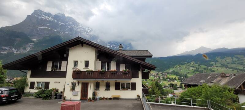 Als we weer beneden zijn dan barst de bui los. Gelukkig kunnen we in de hal blijven om de schuilen. We zijn er ongeveer een uur en dan is het droog.